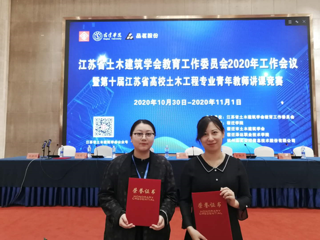 2020年10月30日至11月1日,由江苏省土木建筑学会教育工作委员会主办、宿迁学院承办的江苏省土木建筑学会教育工作委员会2020年工作会议暨第十届“江苏省高等学校土木工程专业青年教师讲课竞赛”在宿迁顺利举行。全省共有包括东南大学、河海大学、中国矿业大学、南京工业大学等在内的30余所高校的八十余名青年教师参加了本届青年教师讲课竞赛。公司吴文倩和韩慧璇两位参赛教师同时获得了一等奖的好成绩。