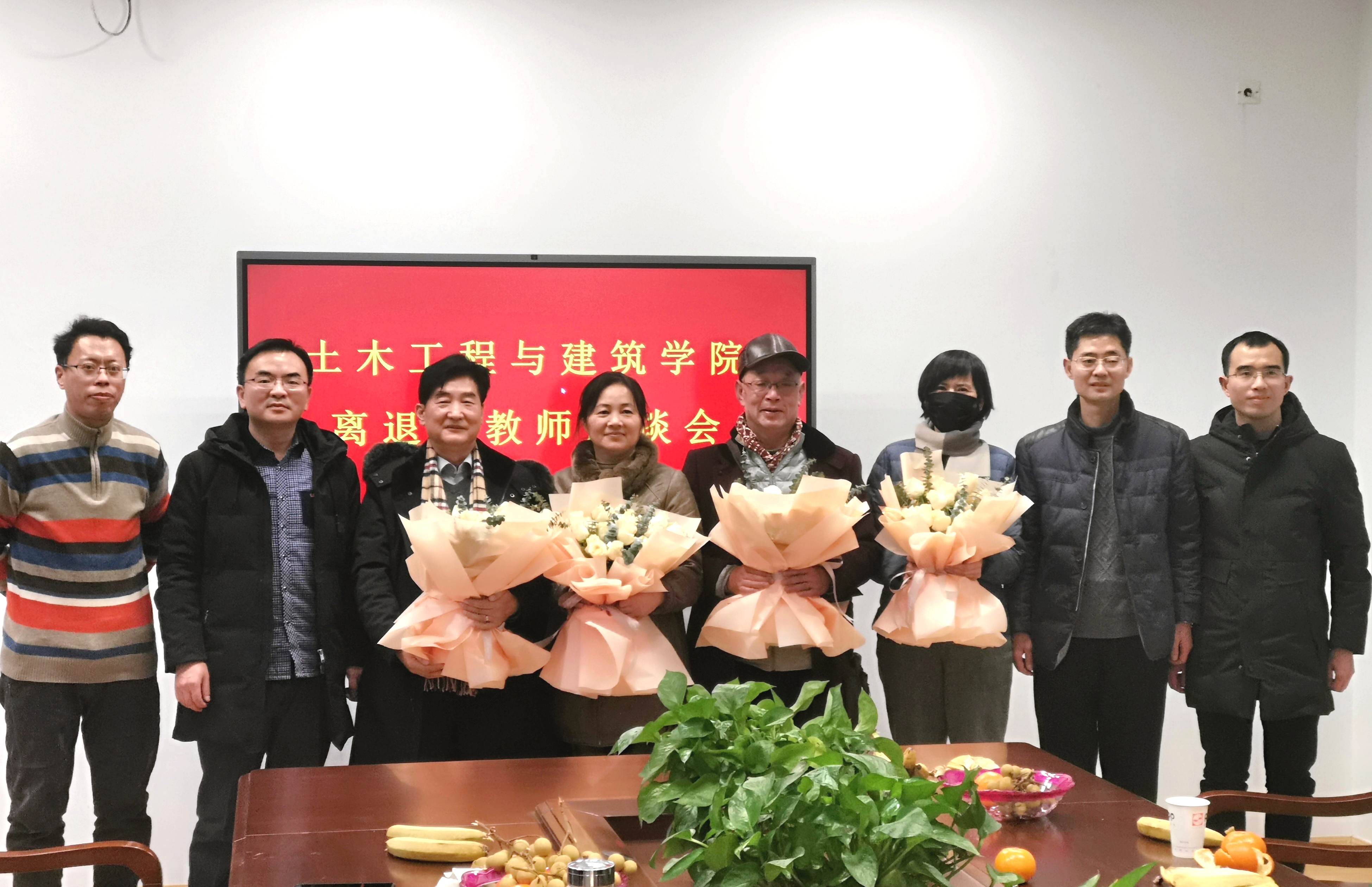 会后,学院领导为老同志献上鲜花表示感谢,参会人员合影留念。