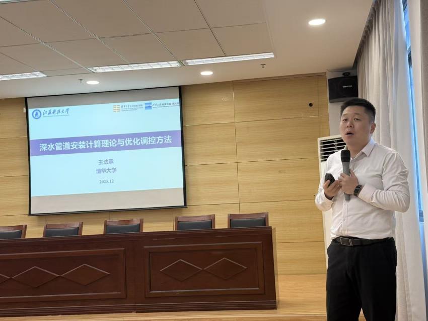 王法承教授长期从事海洋管道设计、建造、安装、运维中的计算理论与工程实践研究,成果应用于南海“深海一号”等重大工程。报告中,他首先点明深水管道是深海油气开发的核心设施,而复杂海况下管道塑性工作状态难以计算、优化和调控。围绕研究成果,王法承教授重点介绍三项突破:一是构建“船-管-流-土”多体耦合实时计算理论,实现安装过程“算得精”;二是创新双金属复合管制造工艺,研发国内首台全长外模限制式水压扩径设备,形成自主知识产权;三是提出随管结构物姿态调控技术,解决“安装准”的工程痛点。同时分享了国内首次全尺寸Reel-Lay卷管铺设实验、异类管道焊接防腐等技术细节。