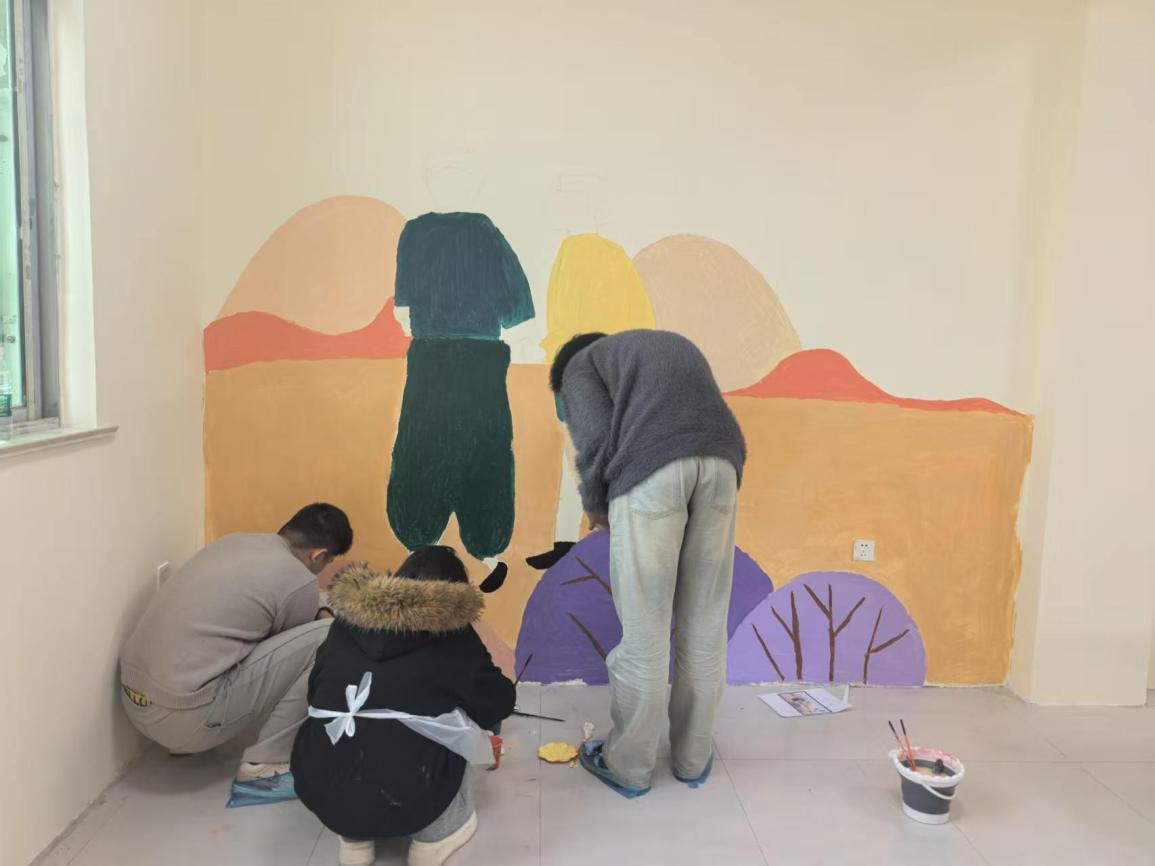 创作过程中,社区工作人员与现场装修师傅频频驻足,称赞同学们以专业技能服务社会、以艺术创作美化环境的志愿服务精神,认可此次活动在环境美化、劳动教育和心理关怀等多方面的积极意义。同学们也在这场沉浸式的劳动与志愿服务实践中,收获了深刻的心灵成长:亲手创造美好的成就感、关爱他人的幸福感、践行社会责任的使命感,使大家更加透彻地理解“老吾老以及人之老”的文化内涵,体会到劳动育人、美育润心、服务暖情的真谛。