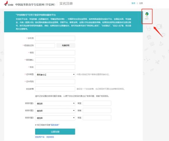 如在注册信息时遇到:填写证件号码后提示证件号码已被注册的问题;填写手机号码时提示已被注册的问题;如何修改学信网账号中的手机号码等等的技术问题,请点击上图中“学信机器人”位置,相关问题系统均有解答。