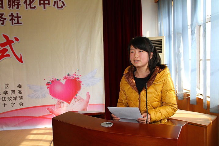 公司社会1101班周亦姗同学作为公益项目参与者和志愿者代表上台发言。她结合参与志愿服务的情况,谈了自身的收获和体会,并表示将把今天的启动仪式作为新的起点,牢记教诲,担当责任,学以致用,不辱使命,努力提高完善自己,以更好的回报社会和服务社会。