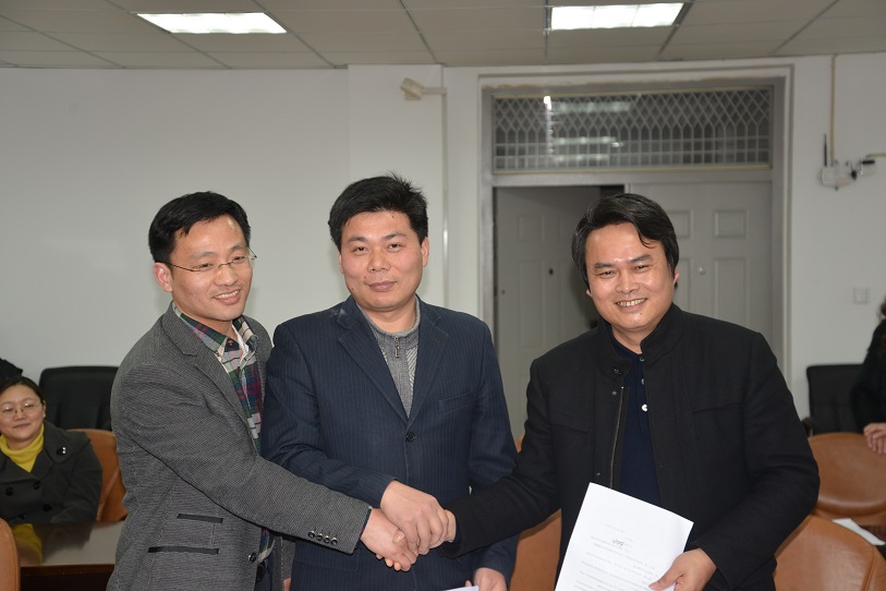 最后,刘小冰经理代表学院和获得学院“点上项目”和“面上项目”教师举行了签约仪式。刘小冰经理希望全体获得项目的教师能够以诚为本,坚守自己的学术信誉,保质保量完成约定的科研任务,为学院综合实力的提升做出新的贡献!