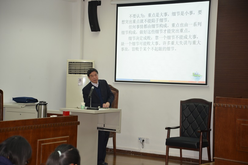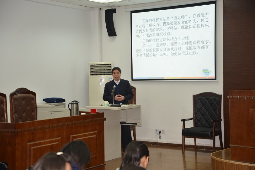 在大家关注的目光中,王教授娓娓道来。领导力包括领导思维、领导体制、领导机制、领导方法、领导艺术、领导素质等,本次授课主要从实用的角度介绍若干领导方法。王教授着重围绕突出重点、以虚保实、以奇带正、注重细节等四个方面,以简炼明快的语言和鲜明生动的事例为大家进行了深入浅出的分析和讲解。