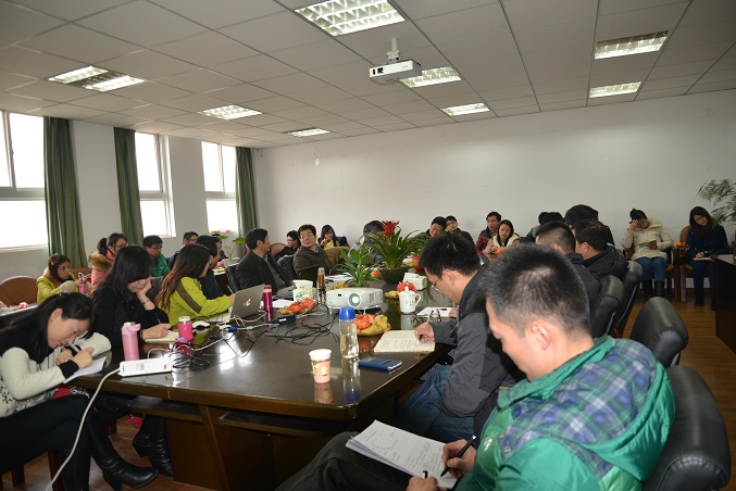 会议首先由黄月华副经理代表公司就该工程的第一阶段“有效表达能力”、“公众演讲能力”、“批判性思维能力”三大能力的课程设计、团队配置、教学成效、存在问题和完善方向等五个方面作主题汇报。