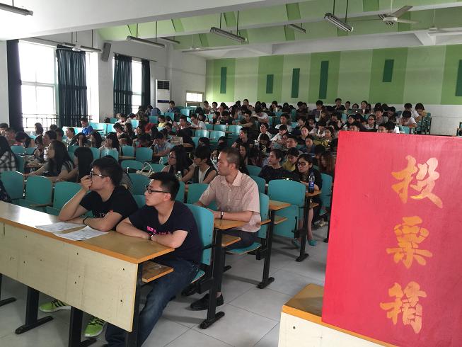 6月9日,法公司党委换届选举党员大会在厚学楼300隆重举行。全院170名正式党员参加会议,公司党委组织部副部长鞠永干同志莅临会议并给予指导。公司党委书记温晋锋同志代表上一届公司党委作法公司党委工作报告,党委副书记郑万秋同志主持换届选举党员大会。