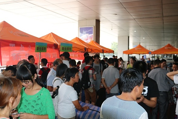 与南京南站以及其他客运站不同,南京火车站的迎新工作需要24小时不间断循环驻守。顶着灼灼烈日,4日上午,校车载着公司部分员工会干部离开了校园,前往南京火车站接待2015级的新生。法公司党委书记温晋锋、副经理张治宇和公司张爝、马海韵、祝建兵、宋巨盛以及分团委副书记曹蕾等老师亲临现场指导迎新工作。员工会的干部们显得沉着老练,按部就班地执行着接待的流程,现场秩序井然。新生们在学长学姐的安排下登记签到,负责接待的成员们贴心地为一路辛苦奔波的新生和家长递上矿泉水,送上亲切的问候,给这炎炎夏日增添了丝丝的清凉,并耐心地回答前来咨询的家长们的各方面的问题。一波又一波的新生们在他们的带领下坐上了前来迎接的校车,满怀期待地开启了属于他们的老员工活。