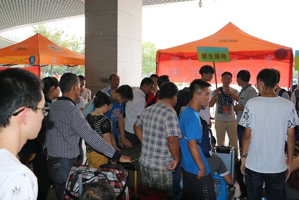 4日夜里,南京突降大雨,雨势汹汹,增加了工作的难度,但同学们任劳任怨,在艰苦的环境中坚持通宵工作,他们热情周到的服务得到了新生和家长的一致认可,成为南京站一道亮丽的风景线。在为时两天的校外接待工作中,尽管天气多变,或骄阳似火,或大雨滂沱,但学院的老师和员工会的干部们仍坚守岗位,消除了新生们初来乍到的陌生感。