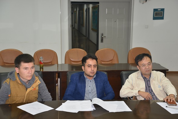 来自越南、也门、哈萨克斯坦、乌兹别克斯坦等四国的五位海外硕士研究生和导师组进行了集体见面会暨第一次集体学术讨论会。除吕建高教授因公请假外,导师组彭奕副教授、骆晓春教授、张爝教授、刘小冰教授出席会议。