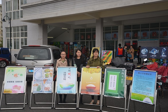 活动初期,以全院研究生各党支部为单位的“粮”心小组进行了充分的准备。经过多次会议与商榷,“粮”心计划小组一步步敲定了工作计划,包括倡议书制作、宣传照片编辑、宣传地点确定、经费预算、后期宣传等。华笑同学及其党支部成员负责撰写倡议书,他们写的倡议书以丰富的内容、朴实的语言使得每一位读者都对自己的浪费行为进行了反思,并积极加入了“粮”心计划的队伍。俞红霞同学、张文雯同学及其党支部同学多方搜集有深刻教育意义的图片,并亲自去各食堂抓拍一些浪费粮食的现象,力求通过“图文并茂”的方式引人入胜。陈萍同学及其党支部成员认真制作经费预算,筹划活动的各个细节,通过多次询价购买活动所需物品,并完成了海报展板制作等工作。纪潇雅同学及其党支部进行活动细节策划与安排,确保活动顺利完成。