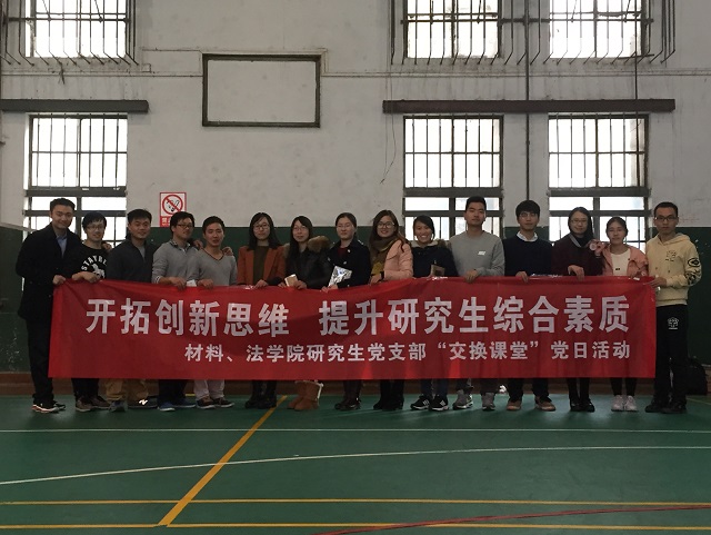 为了开拓创新思维,增进友谊,提高研究生党员的综合素质,法学院与材料学院研究生党委合作开展“交换课堂”党日活动。通过本次活动使两院研究生党员能够更好地借鉴对方学院员工的学习方法,更多地了解文理学科员工的日常学习生活。