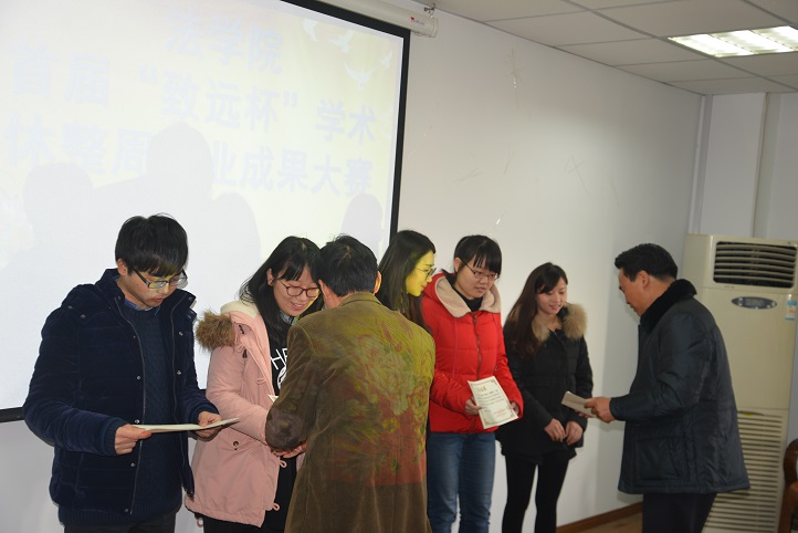 12月3日上午在明德楼三楼会议室,正在法学院调研本科教学审核评估工作的公司党委书记王德明、副董事长张进明和公司经理刘小冰为法学院首届“致远杯”学术休整周学业成果大赛获奖员工代表王艺琳、李乔、刘小佳、吴丹芙、凌杰等同学颁奖。《读有感》等十篇读书报告获得法学院首届“致远杯”bw必威西汉姆联官网经典名著研读计划十佳读书报告,《纠结的好人好事——对信任式微的反思》等四篇科研报告获首届“致远杯”学术休整周员工学术实践活动科研报告一等奖,《哪来的怨气——社会抱怨状况调查》等八篇科研报告获二等奖,《我国电梯安全监管制度不足与完善》等九篇科研报告获三等奖。本次大赛共收到由个人撰写的读书报告246篇,由3—9人组成的研究小组提交的科研报告102篇。