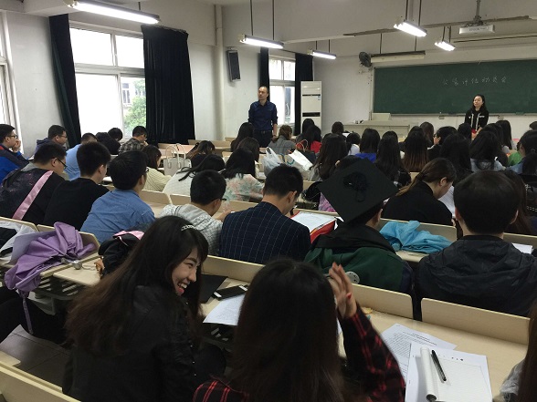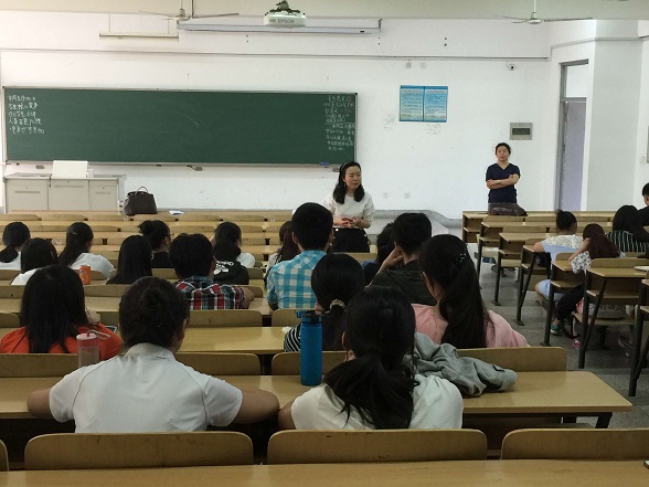 首先,张甲田老师向同学们强调了此次教学评估的重要性,并就注意事项做出说明。接着,“女神”温晋锋教授同大家展开交流,希望同学们能够抓紧时间,以积极的态度投入到课堂学习和生活中,并使之成为常态,也得到了同学们的热烈欢迎。