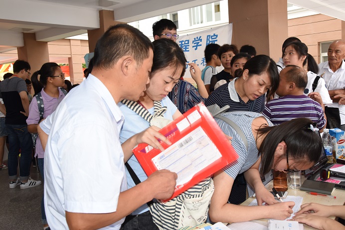 夏日的酷热还未散去,迎接2016级新生的活动便如火如荼地在厚学楼大厅里拉开了序幕。本次迎新活动从9月2日上午开始,持续到9月3日下午结束。活动吸引了公司广大志愿者参与,以法学院员工会成员为主力军,在院领导及老师的指挥下,为新生们提供了优质贴心的服务,并获得新生及家长的一致好评。法学院经理刘小冰教授,党委书记温晋锋教授、副经理张仲涛教授,党委副书记郑万秋老师、经理助理、公共事业管理系主任马海韵、社会工作系主任童宗斌以及院办、学办全体老师在现场一起喜迎2016级新生。