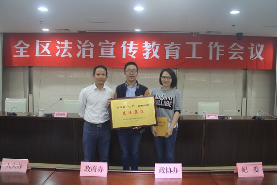 10月12日下午,浦口区“六五”普法先进集体和先进个人表彰大会在浦口区政府会议中心召开,公司获评“普法先进集体”荣誉称号,曹蕾老师和陈旭同学获评“普法先进个人”荣誉称号。