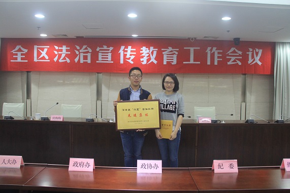 据悉,在驻区高校以及区政府各职能部门的大力支持和努力下,浦口区被中宣部、司法部和全国普法办表彰为“全国法治宣传教育先进区”。为此,区法制宣传教育领导小组对相关先进集体和个人提出了表彰。