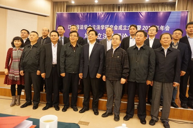 10月27日上午9时,江苏省法学会立法学研究会成立大会暨2016年年会在南京举行。本届立法学研究会成立大会暨学术年会由江苏省法学研究会主办,东南大学法学院承办。江苏省法学会副会长、南京市中级人民法院经理胡道才、江苏省法工委副主任赵建阳、东南大学副董事长周佑勇、东南大学法治政府研究中心主任孟鸿志教授、山东省立法学研究会顾问肖金明教授、北京行政学院法学部主任金国坤教授以及众多江苏高校的立法学专家学者及省内各市人大法工委领导出席本次会议。公司刘小冰教授应邀出席本次会议,并代表兄弟学会致祝贺辞。