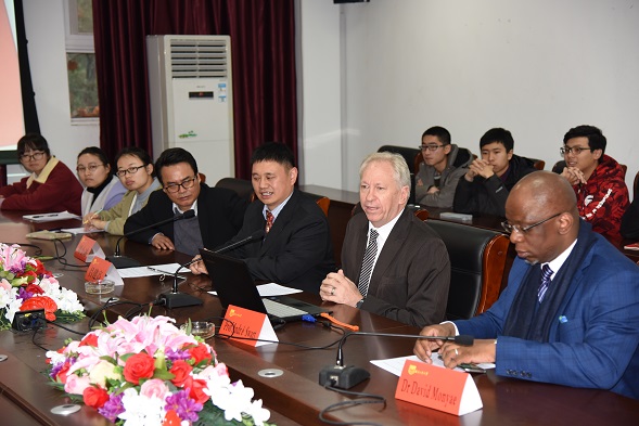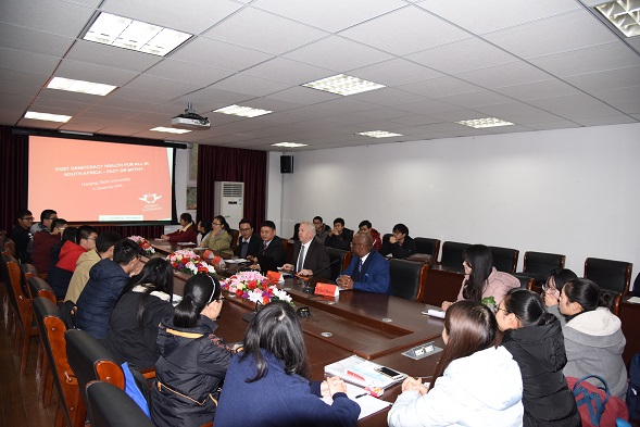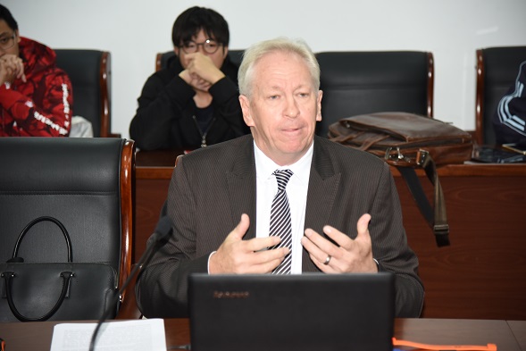 2016年12月21日上午,受公司盛情邀请,来自南非约翰内斯堡大学的Pro AndréSwart教授做客公司第13期法政大讲堂,带来题为“民主南非的全民健康——是现实还是梦想?”的全英文讲座,同行的有吕建高教授和约翰内斯堡大学Dr.David Monyae,法学院经理刘小冰教授主持了本次讲座。本次讲座在明德楼三楼西会议室举行,吸引了许多法学院员工参与。