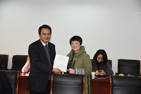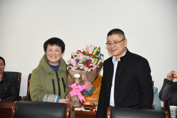 会议伊始,经理助理、公共事业管理系主任马海韵代表全院老师宣读了《致付勤老师的感谢信》。信中回顾了付勤老师在法学院工作十余年兢兢业业、甘于奉献的工作历程,代表全院教师向即将退休的公司院办主任付勤老师表示衷心的感谢。法学院副经理张治宇代表全院老师向付勤老师献上一束献花,经理刘小冰献上全院教师签名的贺卡,贺卡上“披心相付、从事于勤”8个字是对付老师全部工作的高度肯定。