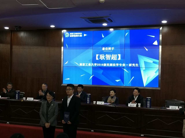 12月2日—3日,由江苏省学位委员会办公室主办的“首届江苏省研究生法律案例大赛”在苏州大学王健法学院举行总决赛,东南大学、南京航空航天大学、南京师范大学等15家高校组队参赛。公司法学院代表队获得亚军,法研2016级耿智超同学获得最佳辩手。全国法律专业学位研究生指导委员会副秘书长王红、江苏省高级人民法院副经理褚红军、江苏省教育厅副厅长洪流等领导出席颁奖仪式。