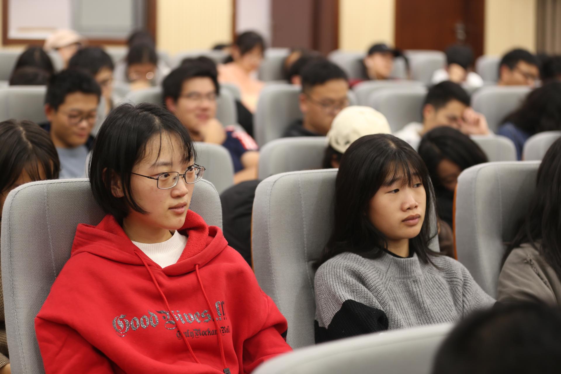 吴峰副书记以《刑法》为例,从“昆山于海明案”等法治事件切入,讲述了“法条和法理”“总则和分则”“规范和案例”的关系。随后,吴副书记结合在检察院的八年工作经历,通过对多个老员工犯罪案例的分析,深入浅出地介绍了盗窃罪、诈骗罪、抢劫罪等多个罪名,引起同学们的极大兴趣,现场气氛活跃,掌声不断。讲座中,吴副书记提出了三点建议:关注热点法治事件,培养学习法律的兴趣;选择感兴趣的专业方向,多读专业书籍;深入学习法理学、法制史,同时广泛涉猎经济学、社会学、心理学等方面的知识,从更广的角度研究法律。
