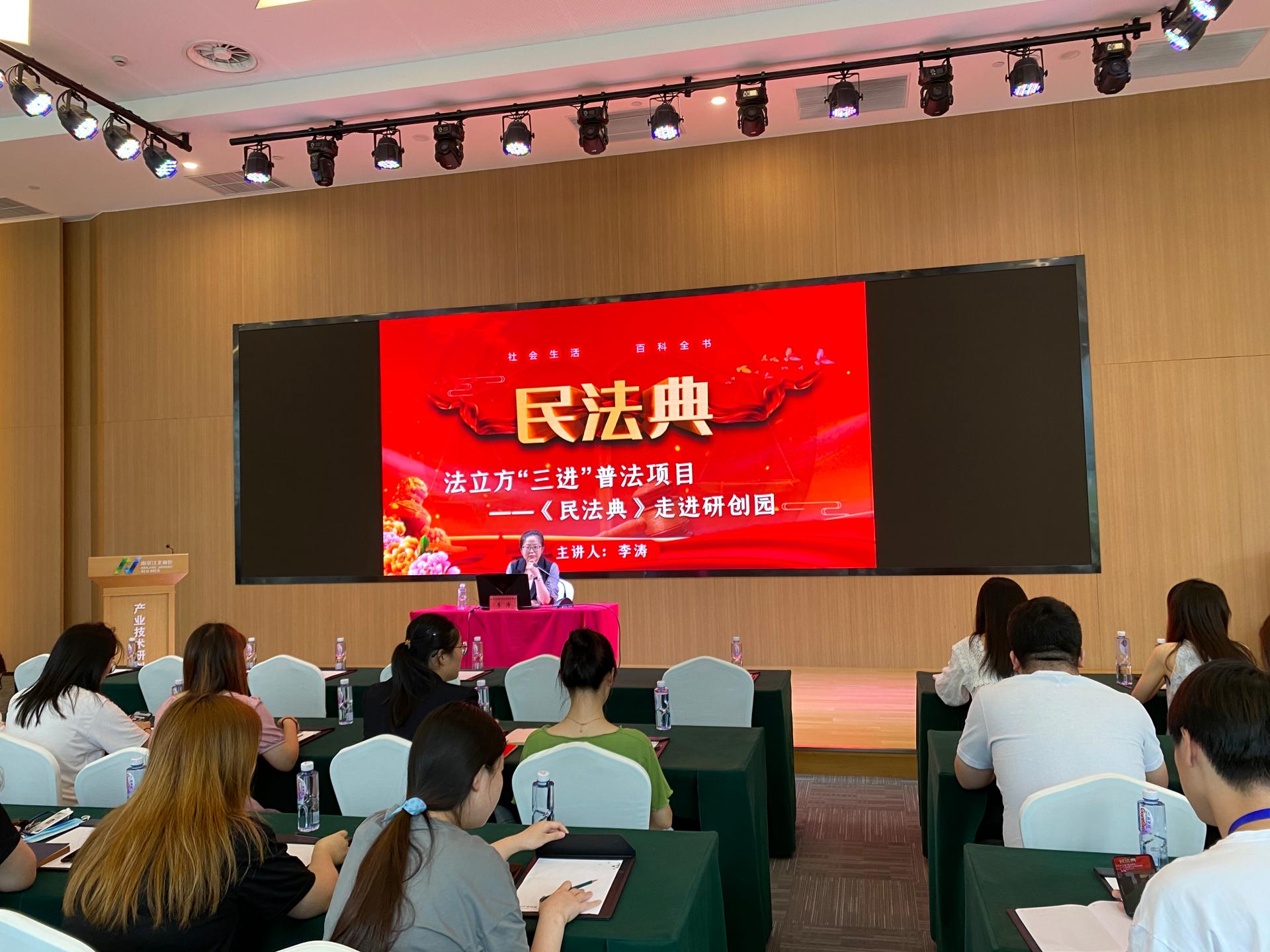 为深入贯彻落实习近平总书记重要讲话精神,切实推动《民法典》宣传教育工作,8月28日下午,江北新区宣讲团成员、法学院副教授李涛应邀走进技术产业研创园开展宣讲工作。