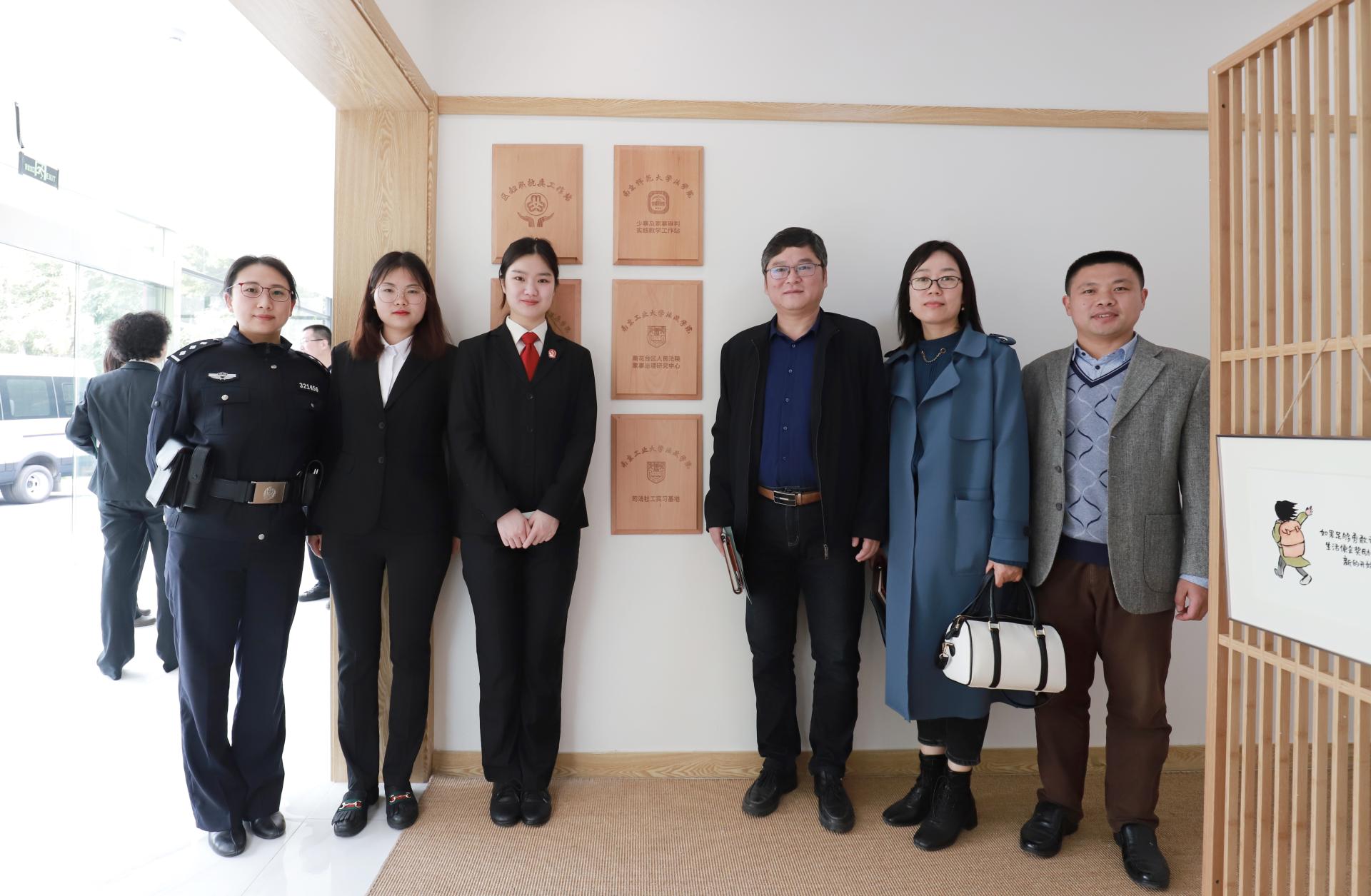 此次活动中,雨花台区人民法院首创“家事调查官”制度并设立了相关就业岗位,首批招聘的两位司法社工均为公司社会工作与管理系毕业生,学院领导、老师与她们亲切合影,并鼓励她们在新的工作岗位上发挥专业优势,体现责任担当。