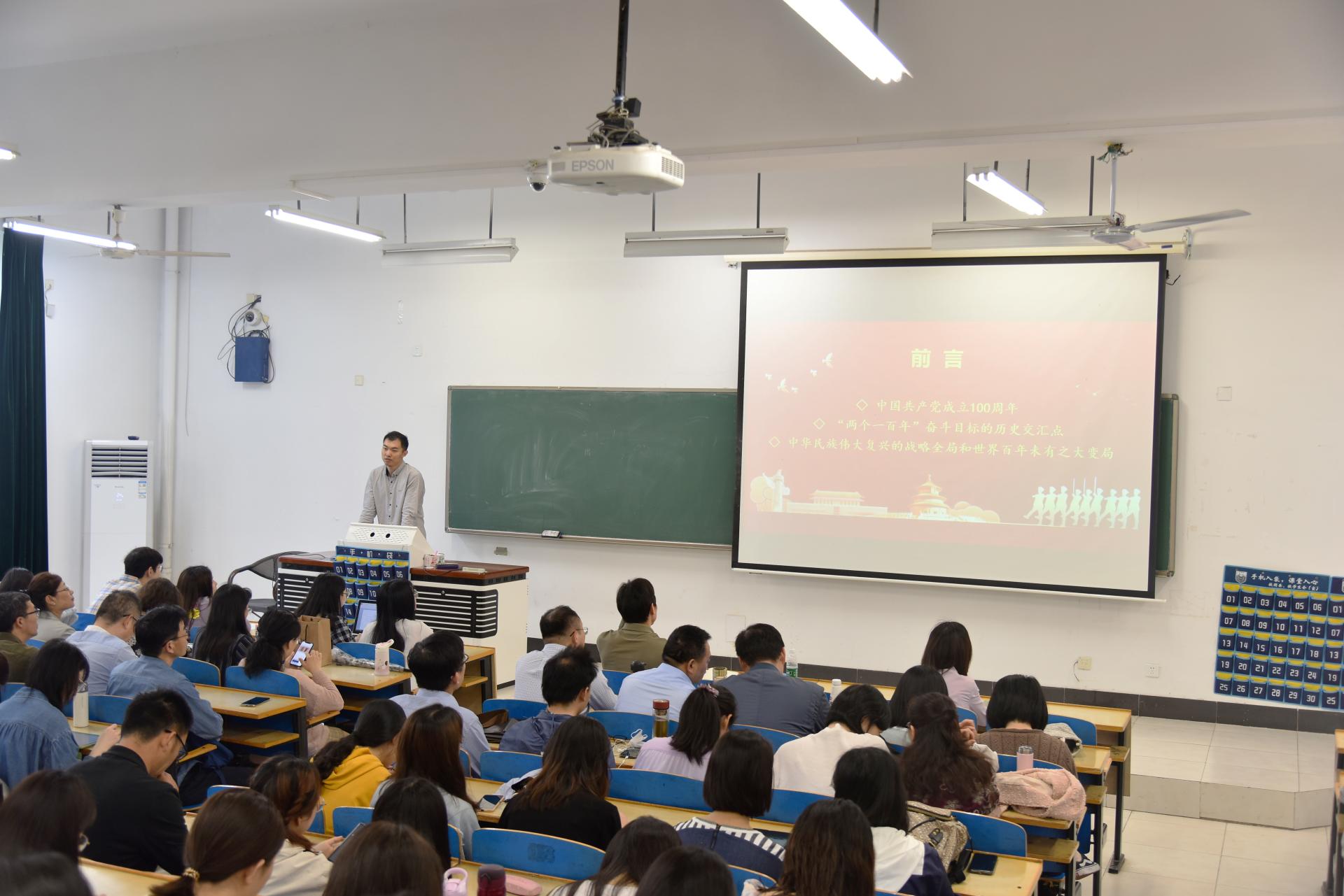 任云飞老师以“学党史、悟思想、办实事、开新局,以优异成绩迎接建党100周年”为主题,向与会人员阐述了充分认识开展党史学习教育的重大意义,介绍了研读党史的基本著作和重要参考资料,全面解读了开展党史学习教育的重点,对中国共产党百年奋斗的光辉历程和历史性贡献进行了系统回顾。任云飞老师在宣讲中强调,党史学习不能光停留表面,要把学习党史同总结经验、观照现实、推动工作结合起来,用功学、用情讲、用心看、用力做,把学习成效转化为工作动力和实效。
