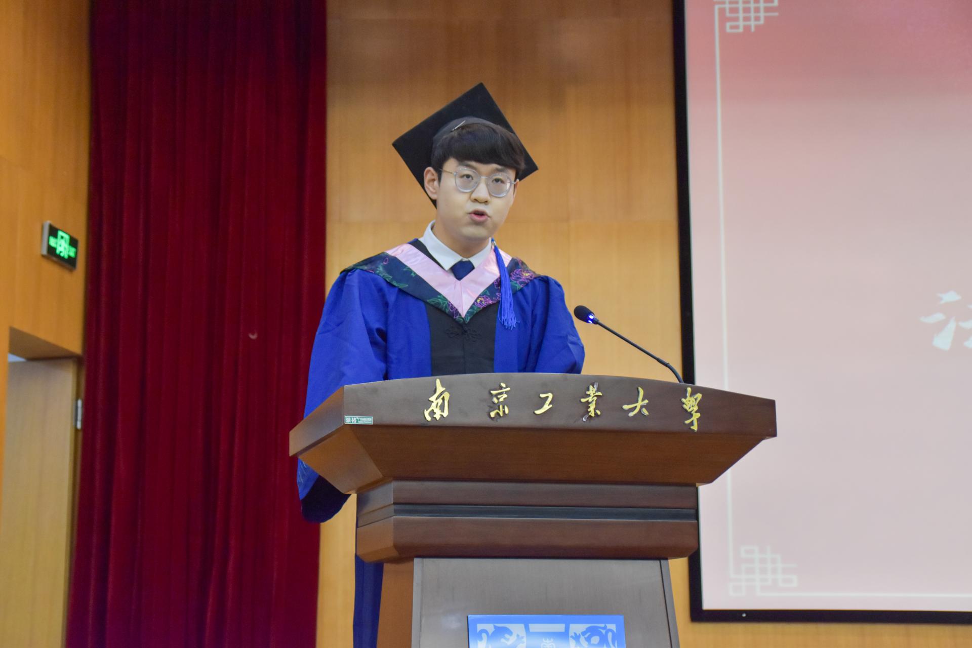 随后,毕业本科生代表、毕业研究生代表和教师代表依次发言。行管1801顾咏、法研19级贾易臻两位同学回顾了在学院学习的点滴,表达了对学院老师悉心栽培的感激,并表示毕业后将不忘初心、志存高远、脚踏实地、砥砺奋进,努力在实现中华民族伟大复兴的赛道上跑出好成绩。社会工作系主任程军老师援引流行歌曲,以幽默风趣的口吻从六个角度鼓舞毕业生不要放弃梦想,要坚持努力,勇敢而乐观地面对现实。