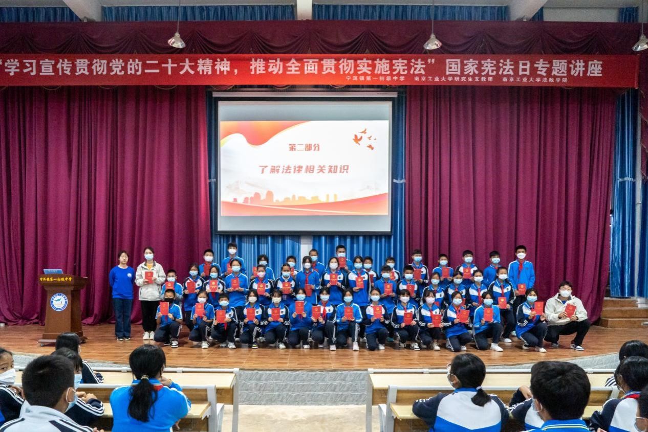 硕士研究生第二党支部为宁洱镇第一初级中学捐赠宪法手册并开展国家宪法日专题讲座。讲座密切联系中学学习生活实际,从未成年人犯罪的年龄规定、坚决抵制校园欺凌、遵守公共秩序、严禁侵犯他人财物等几个方面进行了讲解。通过宣讲深化了中员工对宪法的认识,筑牢校园安全防线,助力其健康成长。