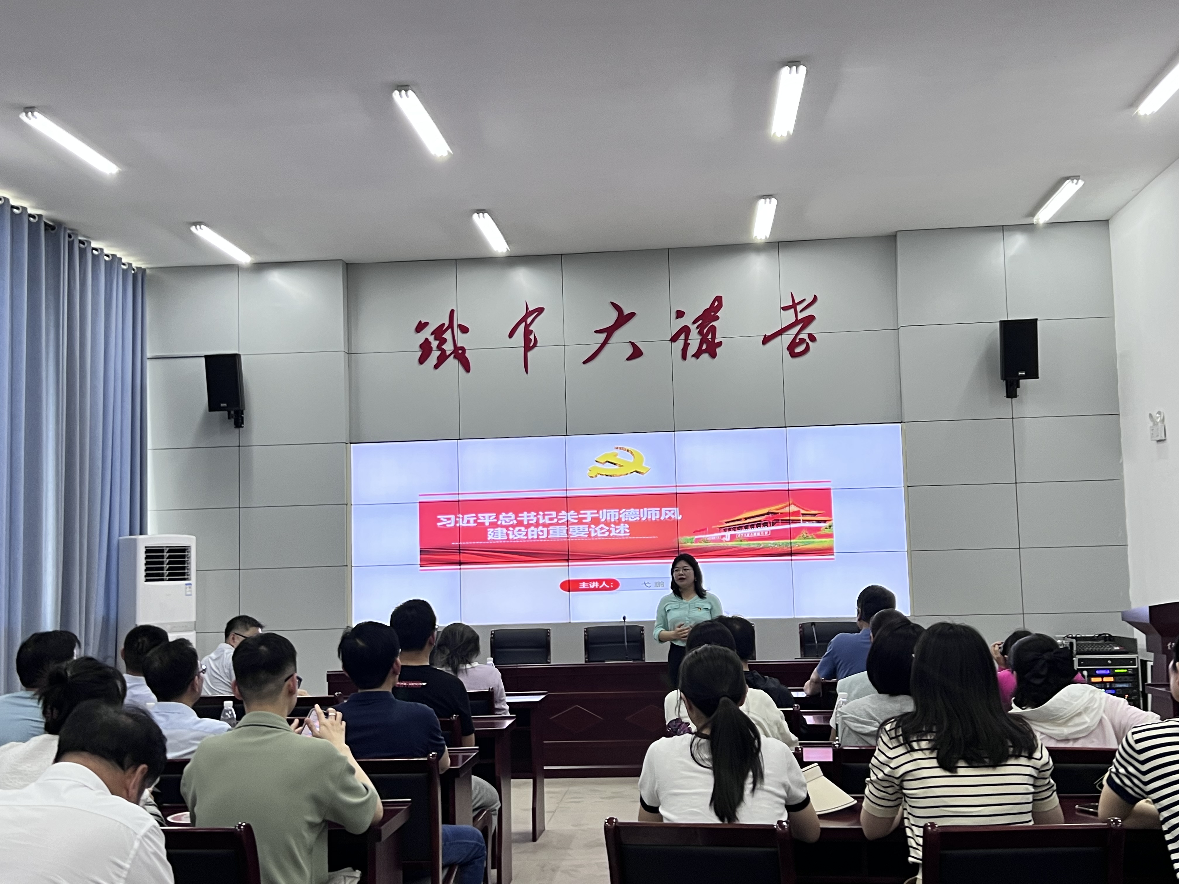 最后,弋鹏书记以《习近平总书记关于师德师风建设的重要论述》为题为现场的党员同志们讲授专题党课。通过以“学”养德,讲述新时代教师队伍建设要求,以“规”正德,展示师德师风失范警示案例。要求各位老师抓好高校思想政治工作阵地建设,抓住课堂这个主阵地,用好教学这个主渠道。要进一步增强立德树人的紧迫感、责任感和使命感,坚持立德树人的核心地位不动摇,全面提升人才培养质量,把思想政治工作贯穿公司产品全过程,实现全程育人、全方位育人。立德树人是高校的立身之本、办学之基,引导广大教师以德立身、以德立学、以德施教。