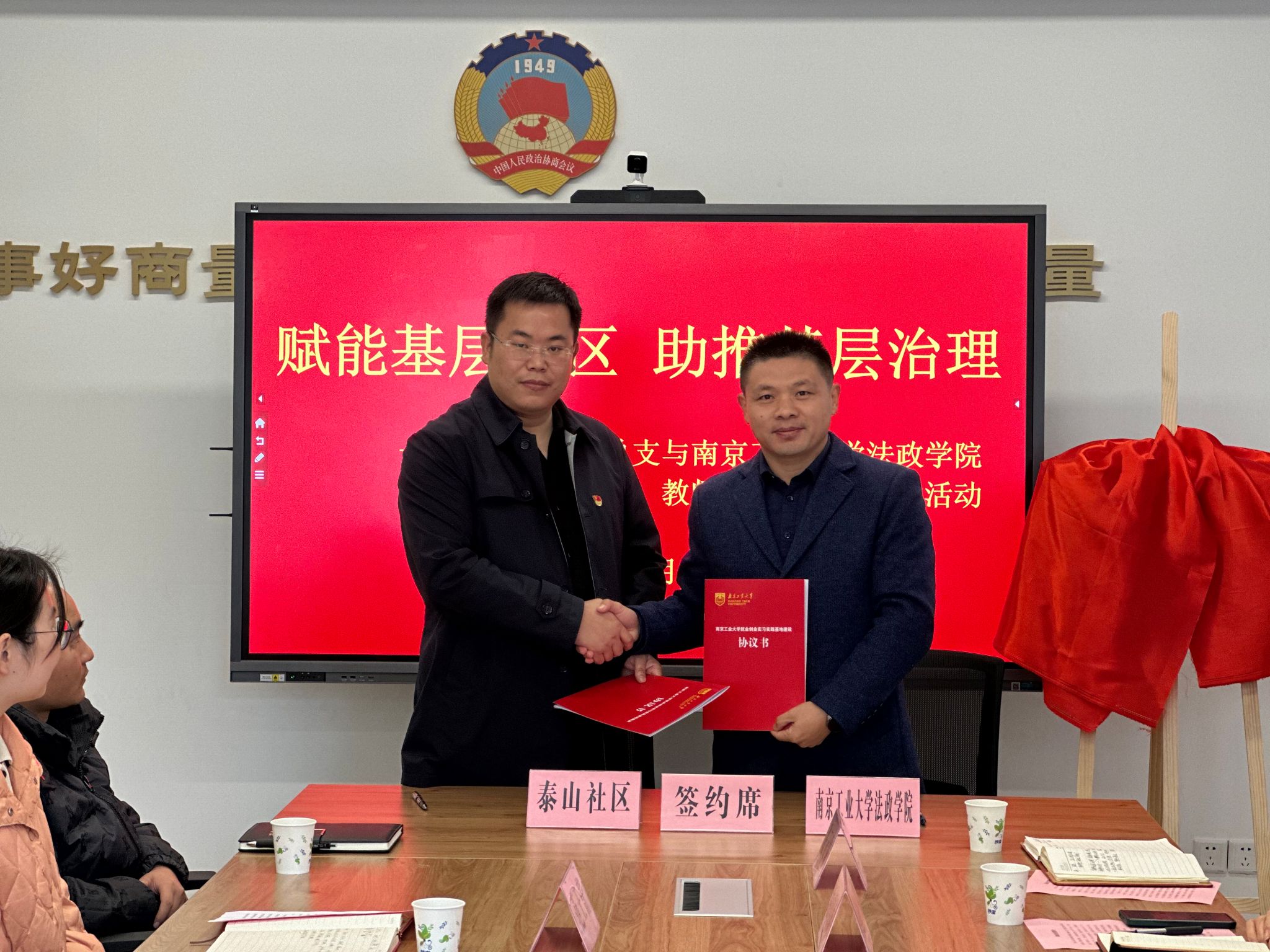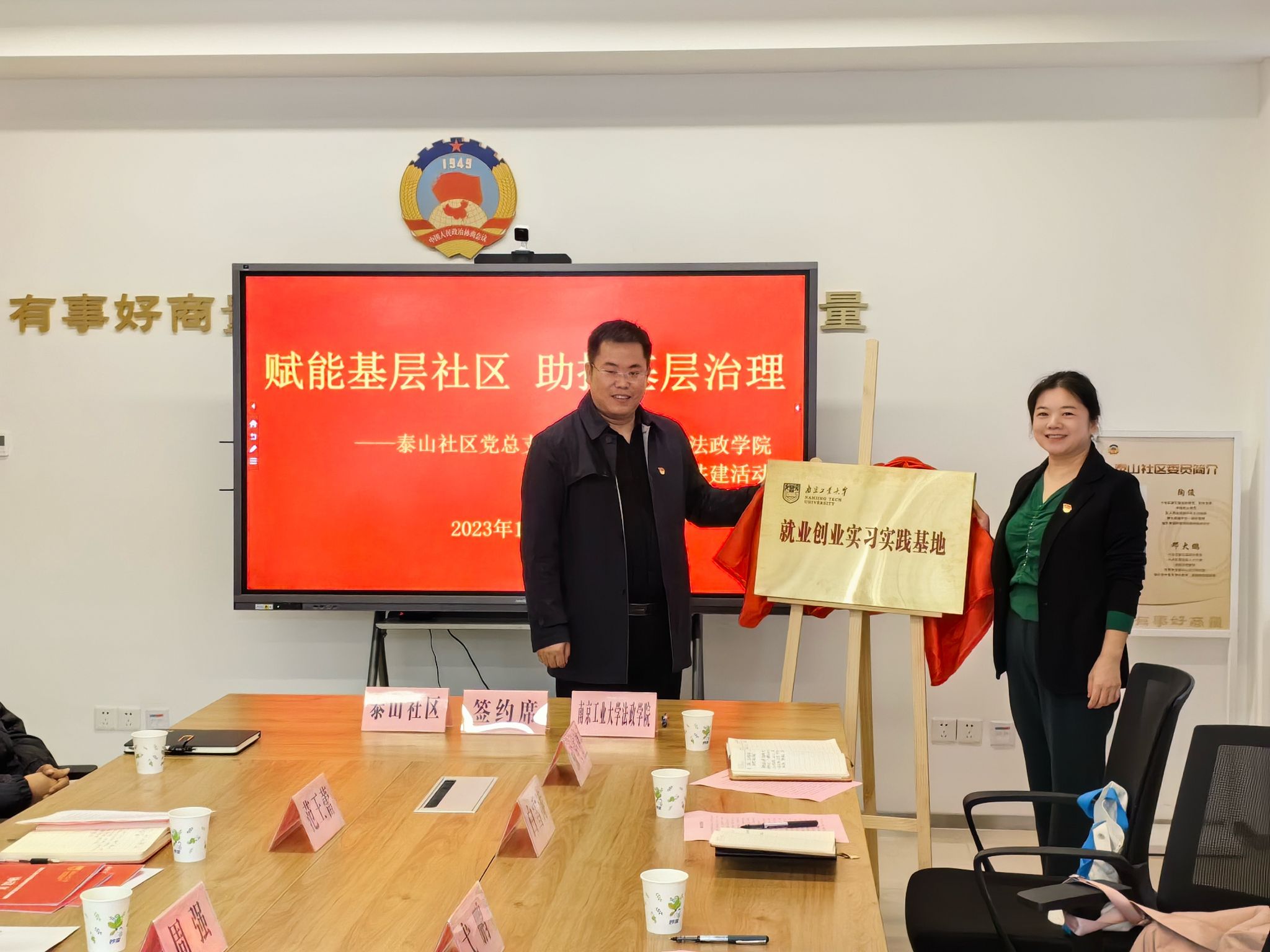 会上,双方签署了《就业创业实习实践基地建设协议》,弋鹏书记为南京市六合区雄州街道泰山社区授牌“bw必威西汉姆联官网就业创业实习实践基地”。