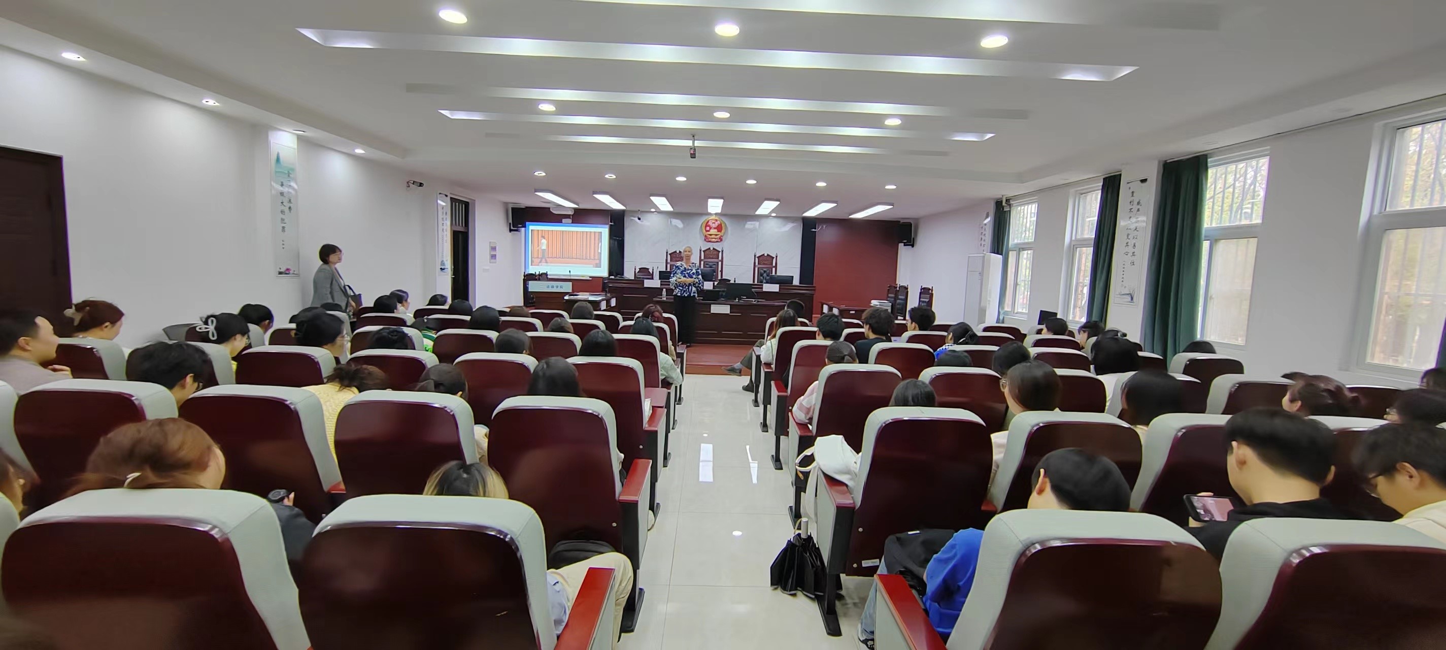 会后,Susan Levy在明德楼一楼模拟法庭为bw必威西汉姆联官网各专业员工开展以《跨专业综合实践的跨科学思维——社会工作与法律问题研究工作坊》为题的英文讲座。
