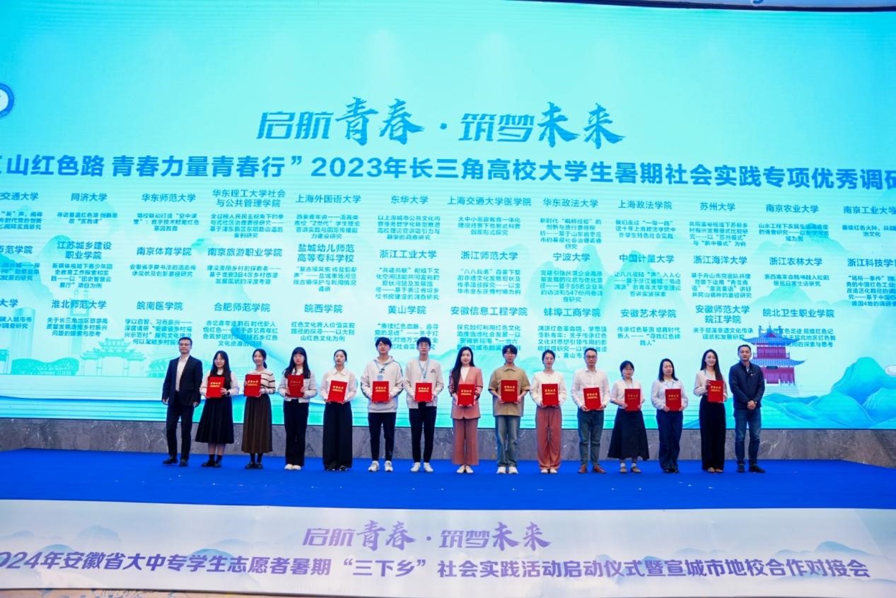 4月26日,由共青团安徽省委、共青团上海市委、共青团江苏省委、共青团浙江省委、安徽省员工联合会、上海市员工联合会、江苏省员工联合会、浙江省员工联合会联合举办的“红色江山红色路青春力量青春行”2023年长三角高校老员工暑期社会实践专项活动总结表彰仪式在安徽省宣城市举行。