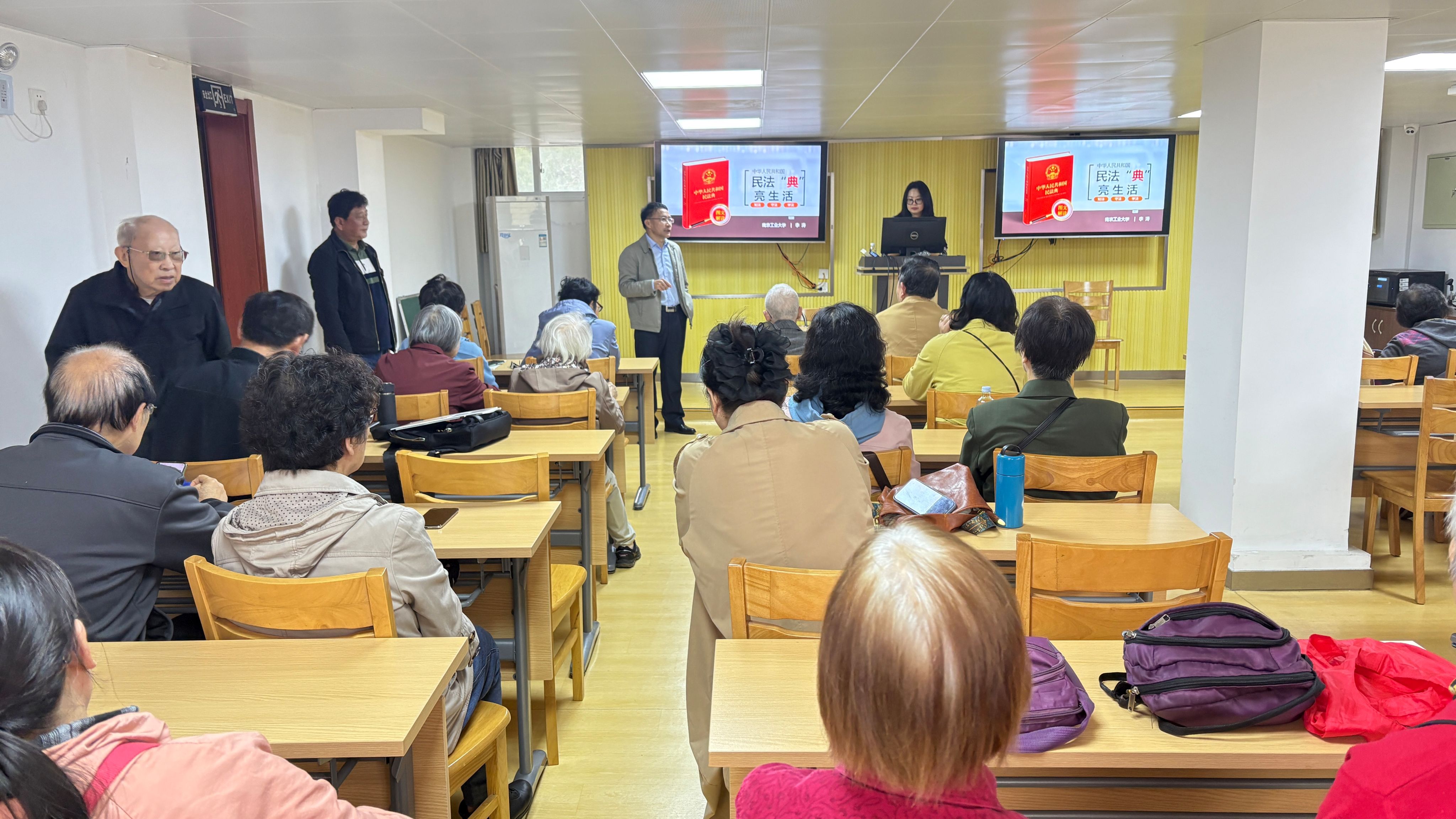 近日,bw必威西汉姆联官网在丁家桥离退休教职工活动中心二楼报告厅举办“民法‘典’亮生活”法律知识讲座,这也是学院工会的“一 会 一 品 ”特色活动(法律援助在身边)现场。