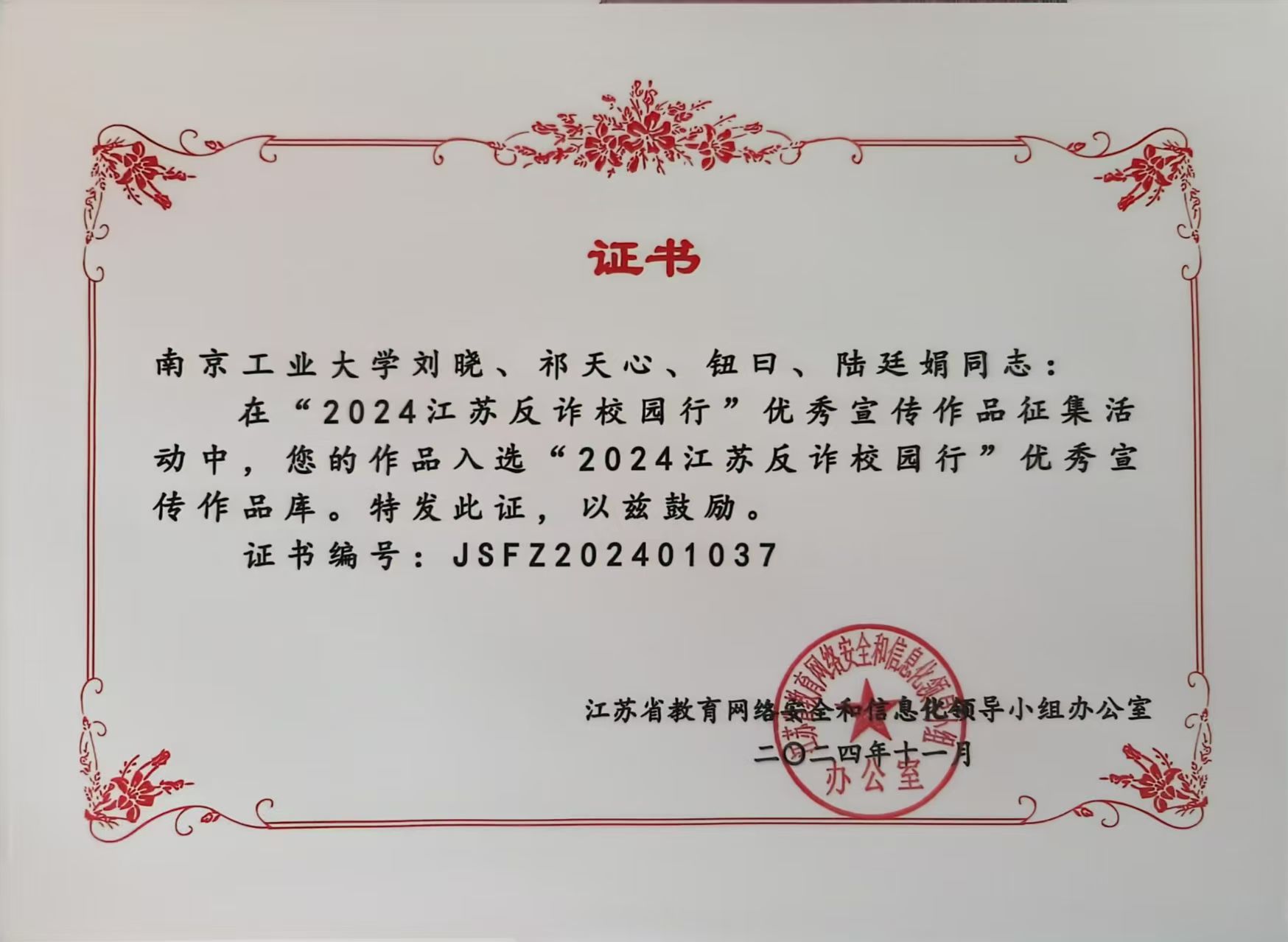 法立方工作室作品入选“2024江苏反诈校园行”优秀宣传作品库