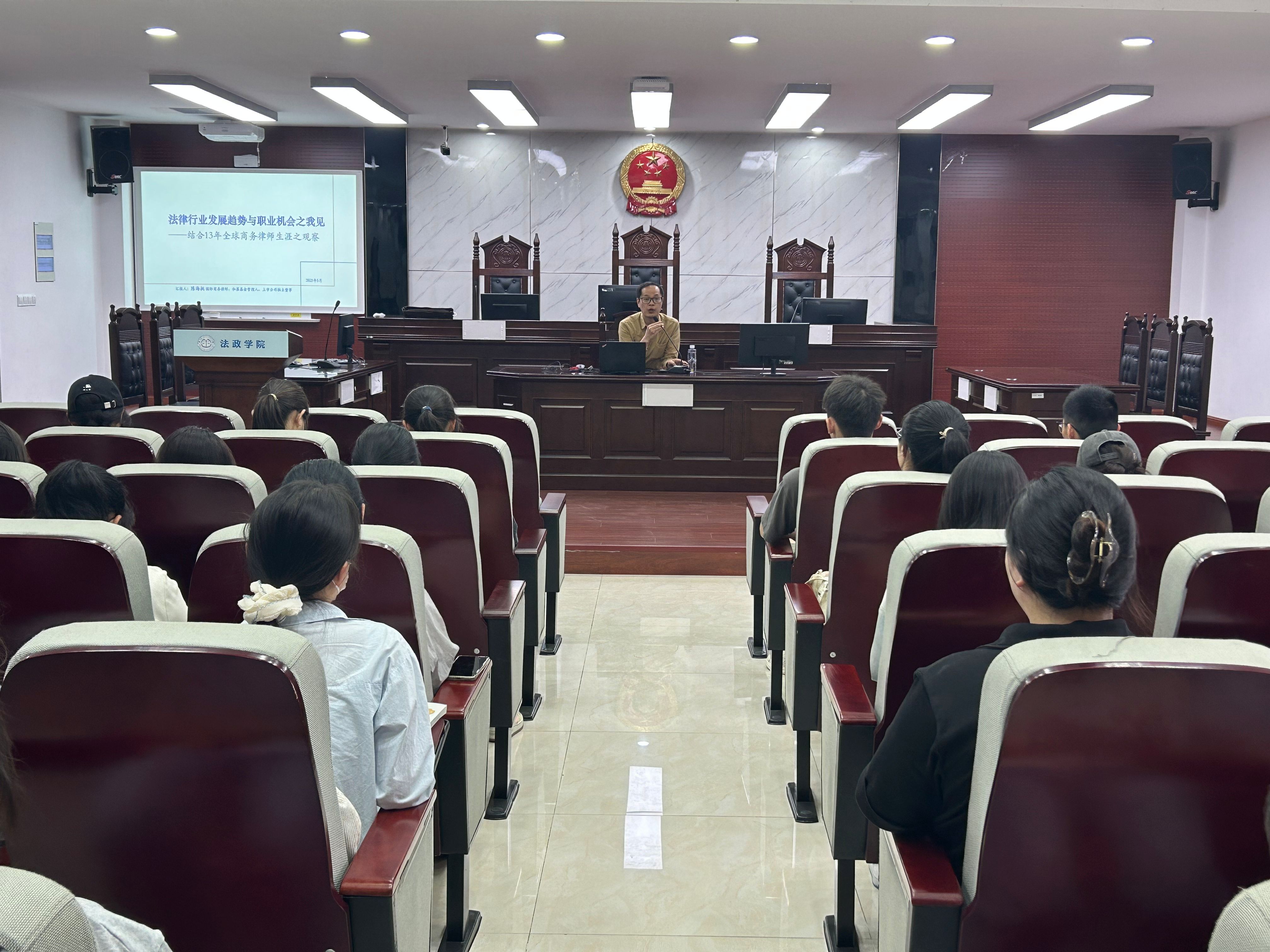 5月14日,公司在明德楼模拟法庭举办“规划启航,职引未来”——法律行业发展趋势与职业机会专题讲座。