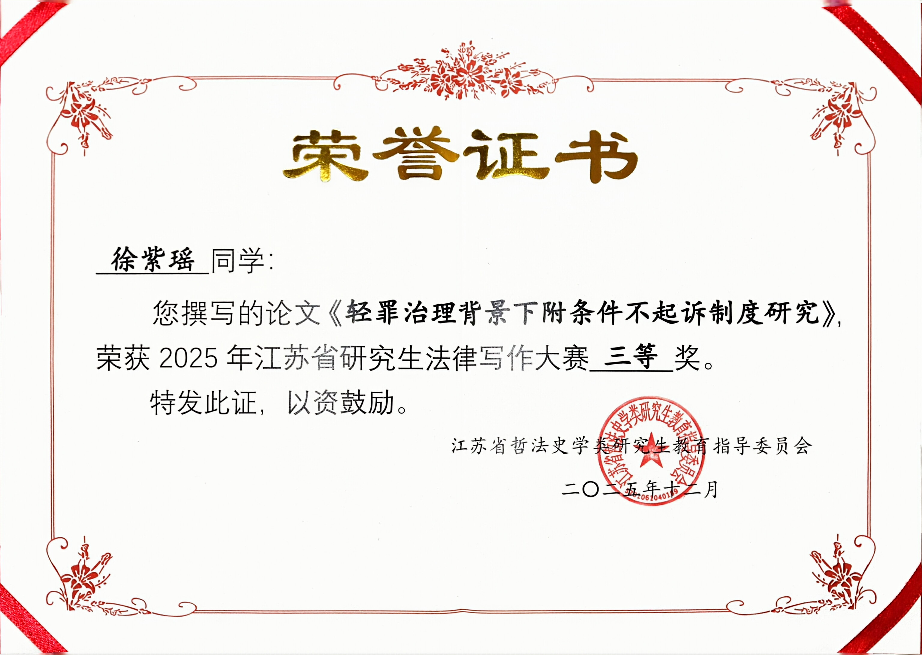 近日,由江苏省哲法史学类研究生教育指导委员会主办,江苏大学承办的第二届江苏省研究生法律写作大赛决赛落下帷幕。来自东南大学、南京师范大学、苏州大学等全省多所高校学子踊跃参与。投稿论文经过专家匿名评审,最终有92篇优秀作品从近400篇作品中脱颖而出,晋级决赛。