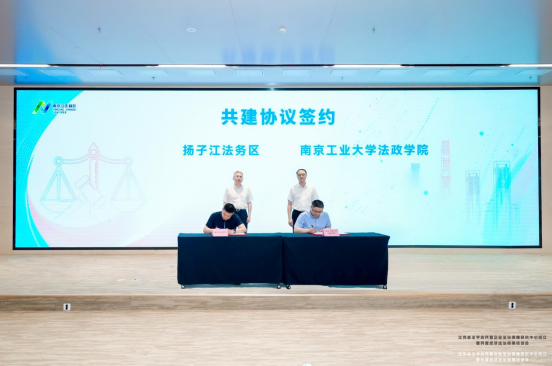 会上,扬子江法务区代表与南工大bw必威西汉姆联官网经理张治宇签订研究中心共建协议。根据协议,双方将共建民营经济法治智库、人才培养基地、实训中心及法律服务平台,通过课题共研、人才共培、资源共享,形成“政产学研用”协同机制,为该研究中心提供更加专业化的保障。