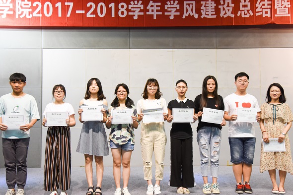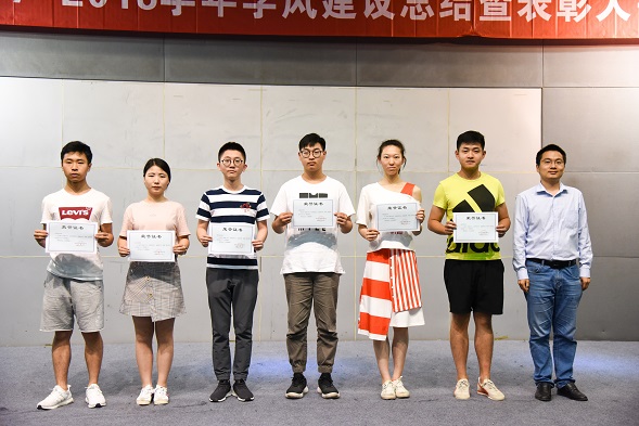 首先,院团委书记曹蕾老师宣读在2017-2018学年荣获院级、校级及以上荣誉的优秀集体和个人名单,并进行颁奖。随后,国家奖学金获得者魏晓莉、江苏省优秀员工干部傅宝兴、校十大杰出青年员工杨理琛、国家级大创项目主持人吴丹芙等4名优秀员工作典型发言,与同学们分享了在学习、工作、竞赛、科创等方面的经验。朱忠祥老师在总结发言中用三个人物分享了三点体会,一是起点有高低,悦纳自己很关键;二是条条大路通罗马,奋斗是最有效途径;三是做高度自律的人,坚持到底才是胜利。最后,他要求同学们坚守诚信考试、善用暑假时间、认真总结规划。