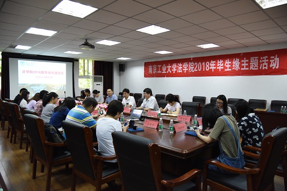 6月21日下午,法学院在明德楼三楼西侧会议室举行2018届毕业生座谈会。公司党委书记熊中宏、副经理衣家奇、副书记朱忠祥,毕业班辅导员曹蕾、王歆钰以及4名研究生、20名本科生参加了会议。朱忠祥副书记主持会议。