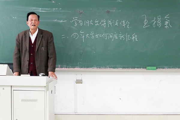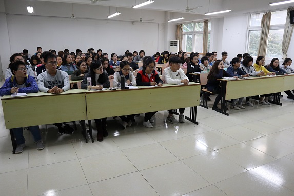 首先王教授向同学们概述了十九大会议的主要内容,重点阐述了中国目前社会的主要矛盾、“一个中心两个基本点”的内容以及“两步走”战略的实施。通过学习十九大会议的相关内容,王教授指出,中国的不断发展强大必然伴随着机遇与挑战。王教授又就大一新生如何开启大学新征程传授了经验,提出了要求,意在告诉新生对老员工活应有良好的规划,在参加社会实践活动和培养兴趣爱好的同时,要始终坚持把学习放在第一位,学会统筹兼顾。