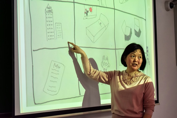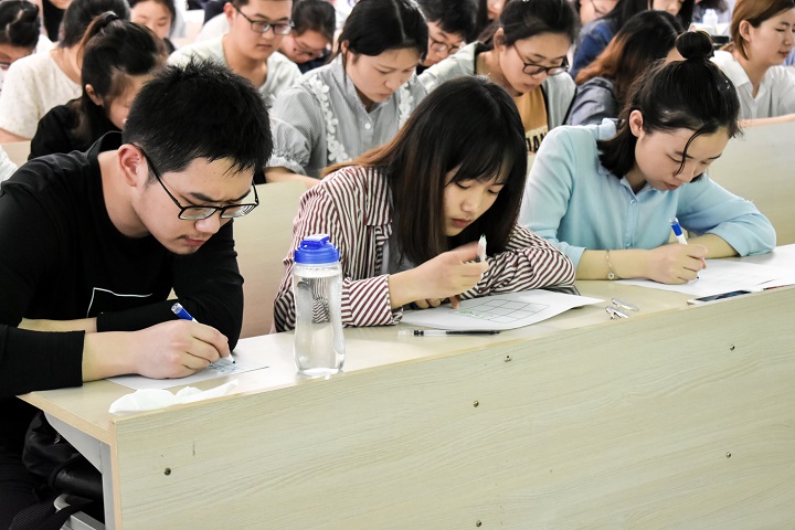 张老师围绕“修己安人,助人自助”这一主题,通过列举现实生活中存在的具体案例,为同学们讲解如何处理宿舍矛盾,如何学会倾听他人,如何克服心理障碍等问题,引导同学们学会换位思考,劝勉同学们助人者只有修己、尽己,才能推己、安人、成人之美。为帮助大家加深理解,张老师与同学们展开互动,让同学们通过身边同学画在九宫格上的图像猜测对方的情感,使得同学们对处理人际关系有了更加直观的认识。