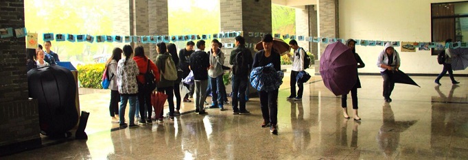 挥毫泼墨点江南,捕光掠影春未老。本次艺术展分为“绘春留情”绘画作品展示和“挽春剪影”摄影展两个部分,力争吸引员工“走下网络、走出宿舍、走向操场”,发现身边之美。参赛作品精彩纷呈,妙趣横生,评选者细心甄选,目光如炬。活动开始前,主办方将作品用夹子固定在麻绳上,悬挂在石柱之间。精美的作品,诗意的环境,浑然天成,相得益彰。清新文艺的布置,吸引大家驻足围观。同学们为自己喜欢的作品投上宝贵的一票,法学院员工会也精心制作了以部分摄影作品为背景的精美明信片赠送给现场同学作为纪念。投票环节结束后,主办方根据投票情况评选出优秀作品,为获奖作者颁发荣誉证书。