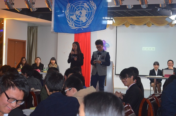 此次活动共有三大议题,分别是日本修宪和解禁“集体自卫权”、原油价格下跌、中国崛起与“新殖民主义论”,并有七大国家参加商讨。选手们要经过首轮发言、自由辩答、总结陈词这三大部分进行激烈角逐。紧接着还有轻松愉悦的冷餐会时间,为各位选手拟出最后议题提供了一个宽松的环境。“模联”大赛在庄严的会歌中拉开帷幕。