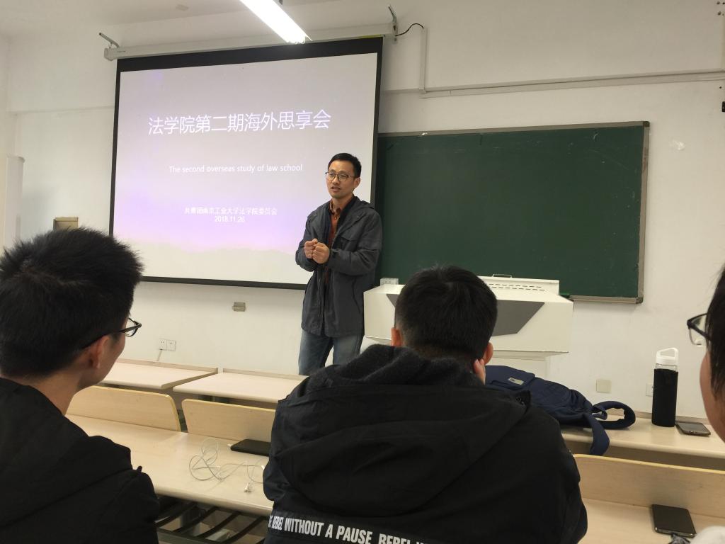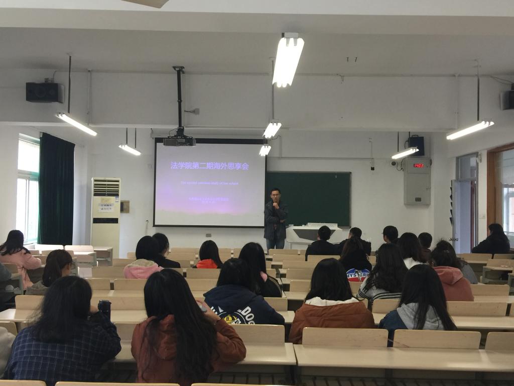 11月26日下午,法学院第二期海外思享会在厚学楼103举行。社会工作系主任童宗斌老师,法学专业刘嘉红、杨理琛,行管专业李进萍、李佳敏等同学担任分享嘉宾,院团委副书记王中元主持会议。