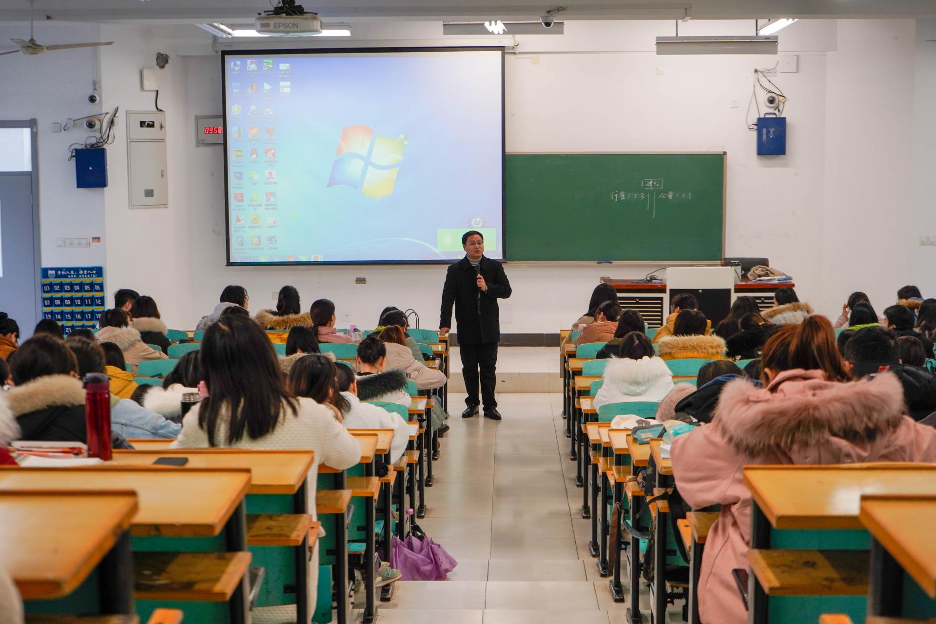 最后,系主任朱玉知老师深入分析了当下的考研形势,指出考研的重要性,更结合自己员工时代的经历,鼓励同学们积极考研,努力拼搏,力争上游,奋斗不止。