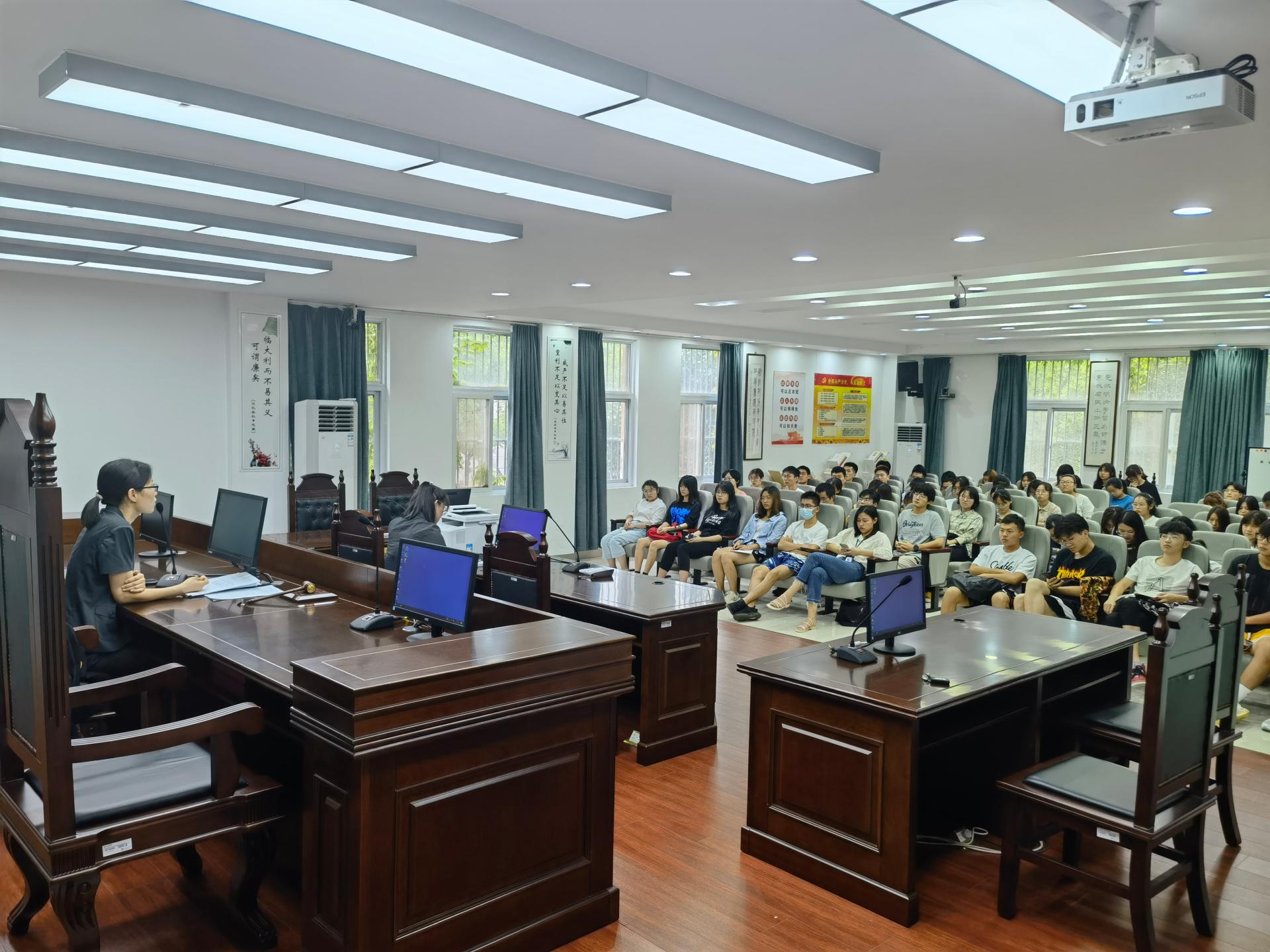 为培养法学专业本科员工的司法实践素养,让员工真切感受案件和庭审现场,7月5日,浦口区人民法院在明德楼一楼模拟法庭(浦口区人民法院第十八法庭)公开开庭审理了一起凶宅导致房屋价值贬损的买卖合同纠纷案件,法学专业本科生进行了旁听。