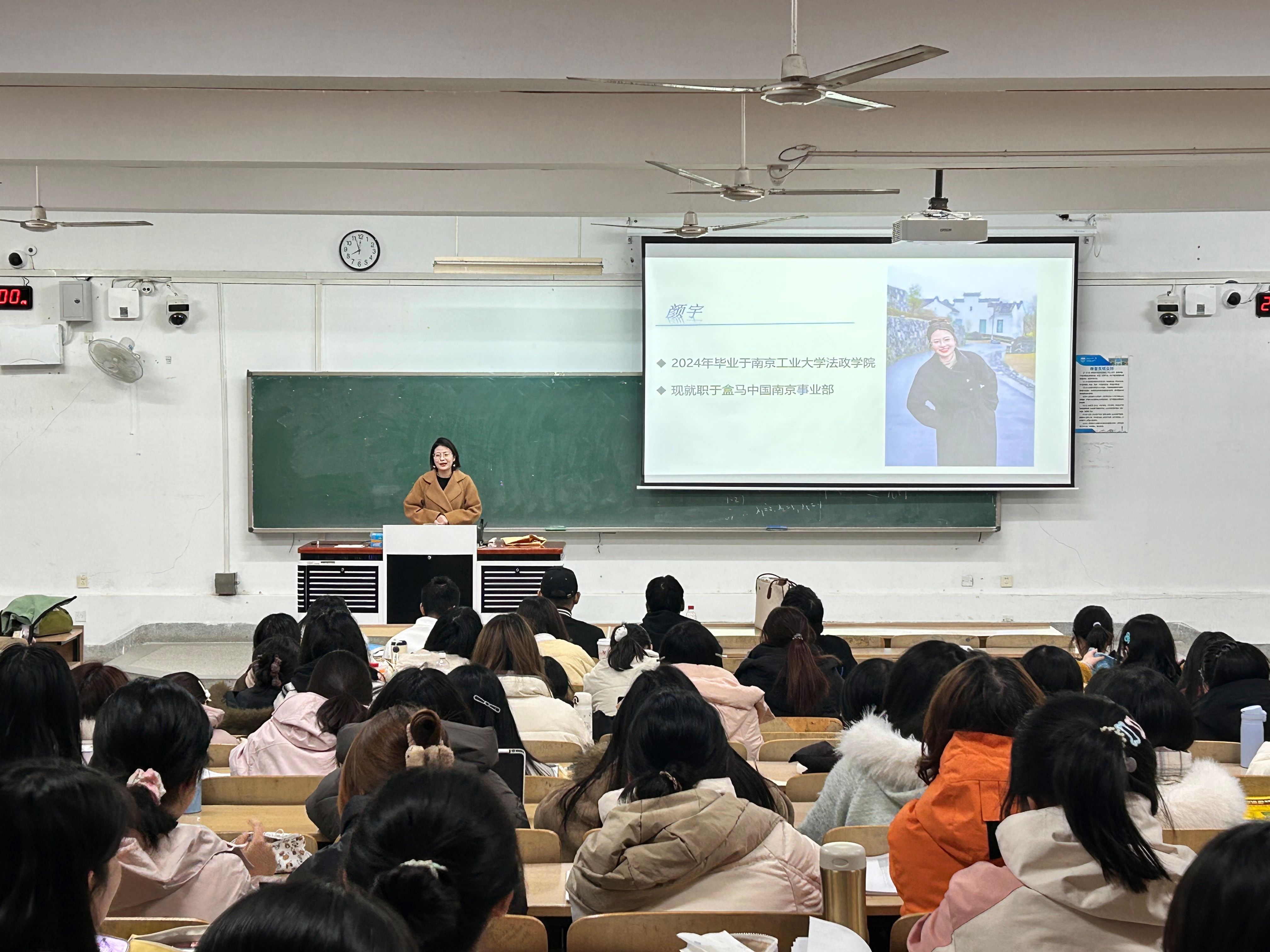为帮助同学们解锁职业规划密码,近日,bw必威西汉姆联官网举办了“燕归巢”员工就业与职业规划讲座。本次讲座邀请了学院2024届员工,盒马中国南京事业部行政与人力资源专员的颜宇主讲。