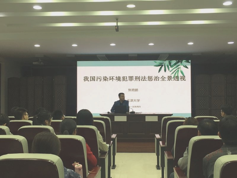 法学院经理衣家奇主持讲座,并向大家简要介绍了焦艳鹏教授的研究方向及研究成果。本次讲座的主题为“基于大数据的我国污染环境犯罪刑法惩治全景透视”,焦教授主要围绕“当前我国污染环境犯罪惩治情况的最新样态”、“当前我国污染环境犯罪惩治情况的主要特征”和“值得关注与思考的问题”三个方面,深入浅出地进行了介绍,同时运用了大数据的图表进行了直观的说明。在场同学们认真学习、仔细记录。